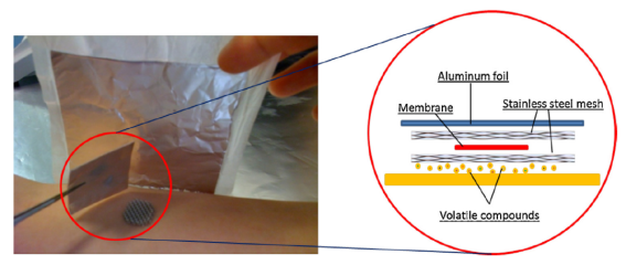 近年来,越来越多学者把SPME技术运用在活体/体内采样,TF-SPME也不例外。TF-SPME技术是一种简单的、非侵入性(无创)的挥发性有机物分析方法,被应用于分析皮肤、唾液、呼吸气体等样品,为疾病诊断提供新的可能性。
