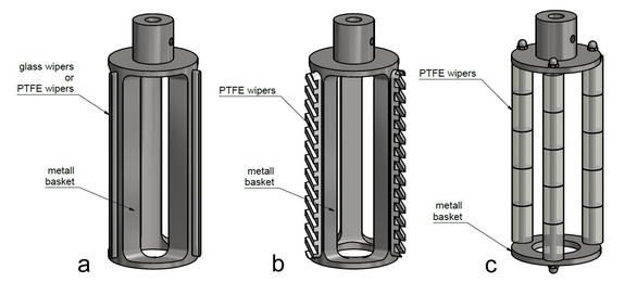 a.通过离心力旋转的PTFE和玻璃刮膜器