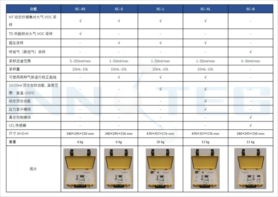 ● 多种型号可选,SC-XS和SC-S型号用于常规采集;SC-L型号用于常规采样、静态顶空采样;SC-XL型号用于常规采样、静态/动态顶空采样、外接气源压力控制采样;SC-B型号专门用于呼吸肺泡气采样。